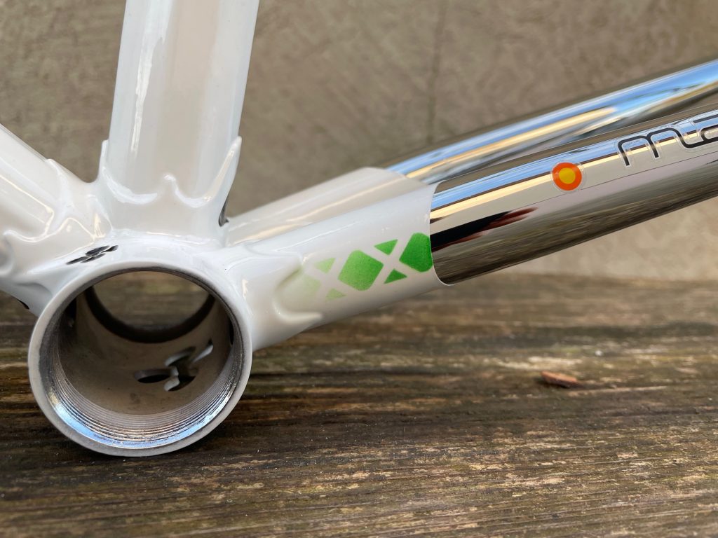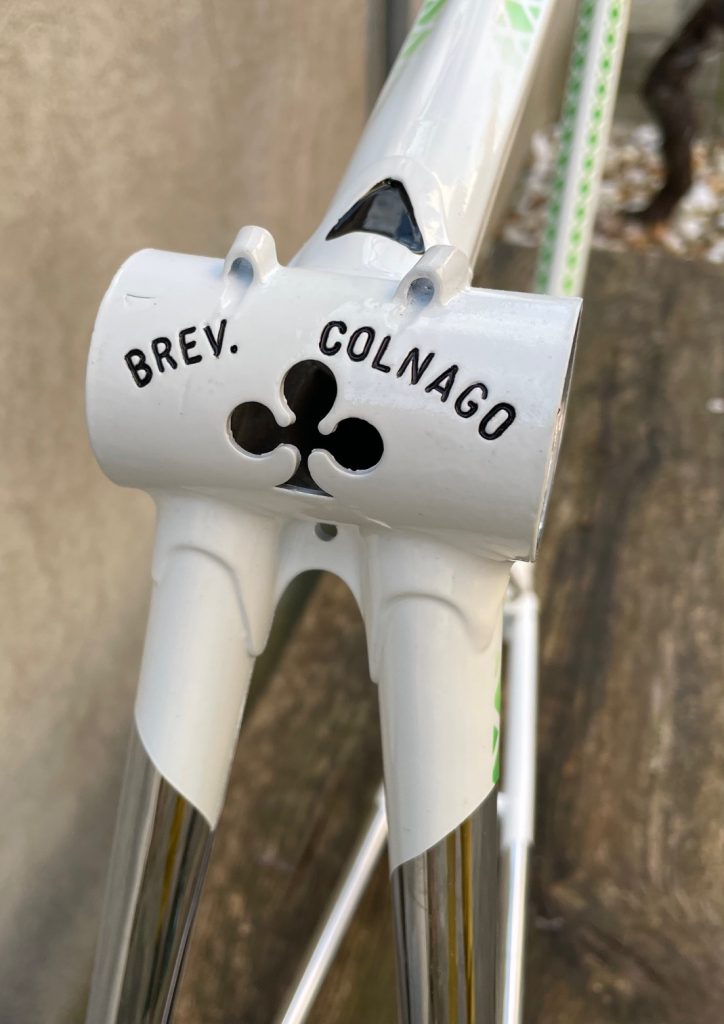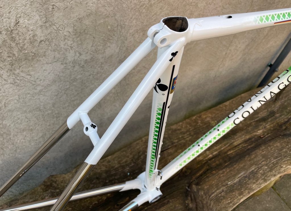 A Colnago Master piu frame in Superconfex team paint scheme. This frame was made and used by a Slovenian professional rider in the end of 80s, who ride for Rog cycling team.