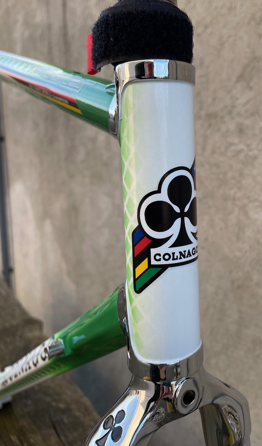 A Colnago Master piu frame in Superconfex team paint scheme. This frame was made and used by a Slovenian professional