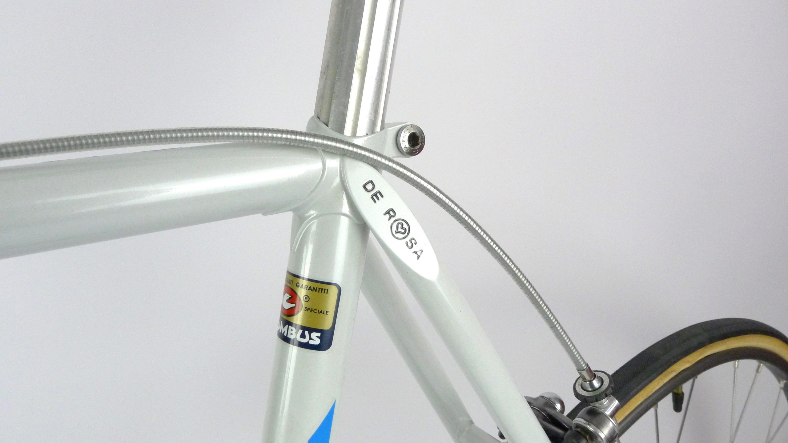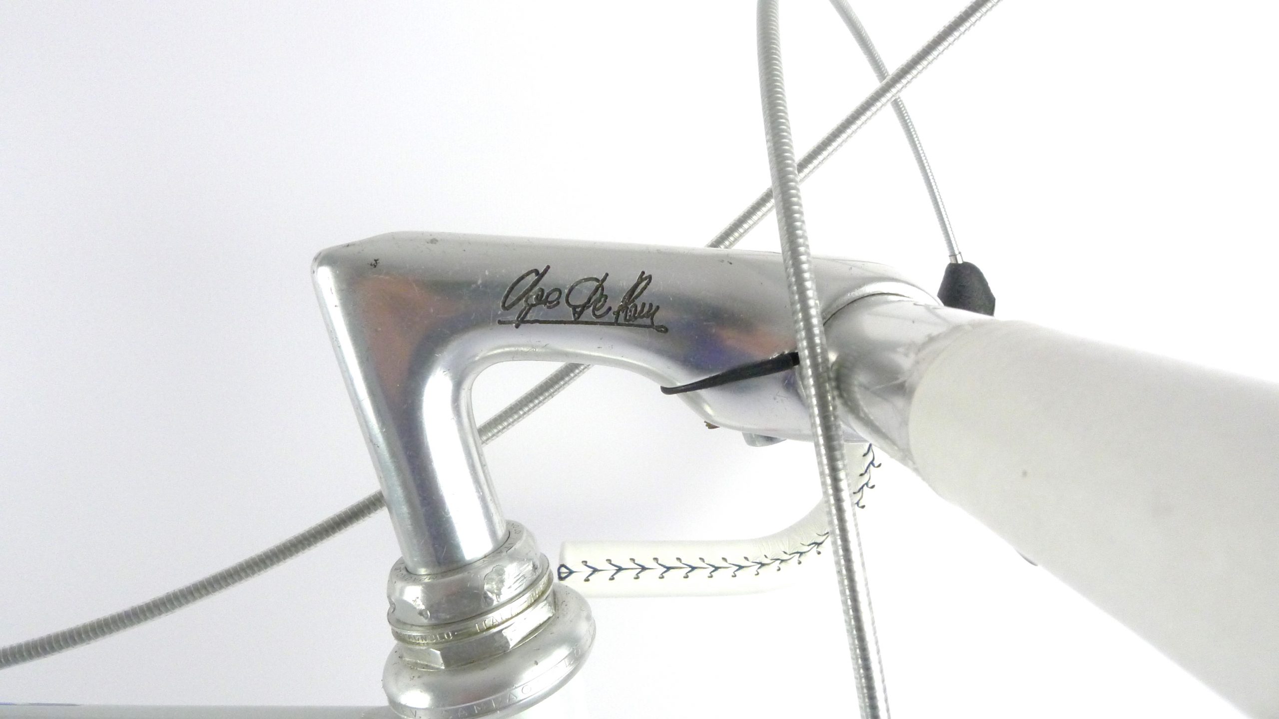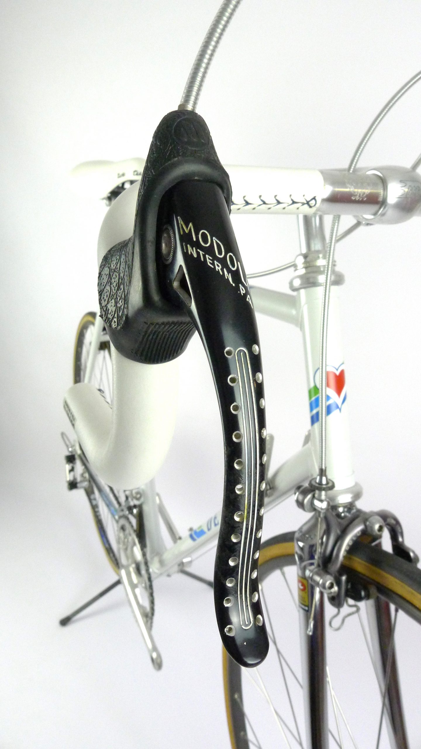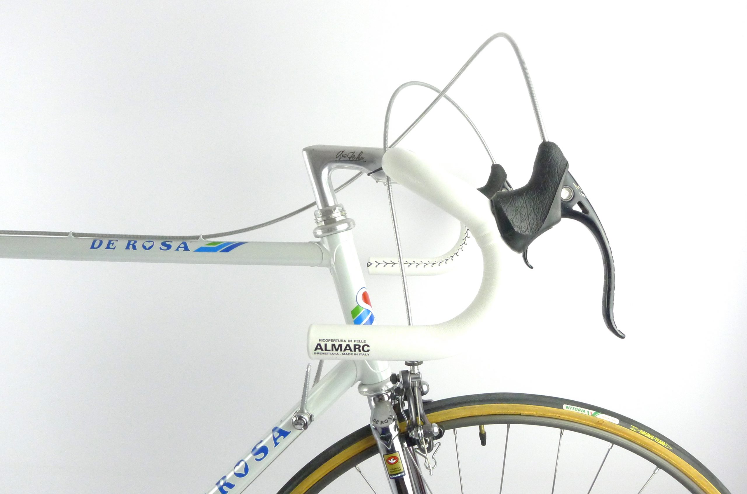 An early Ugo De Rosa Professional Slx with Campagnolo Super Record group, Galli Paris-Roubaix rims and Modolo Inter. pat. brakes. The bike is simply fabulous. The pearl white color and De Rosa equipe decal set. its made with Columbus Slx tubes.