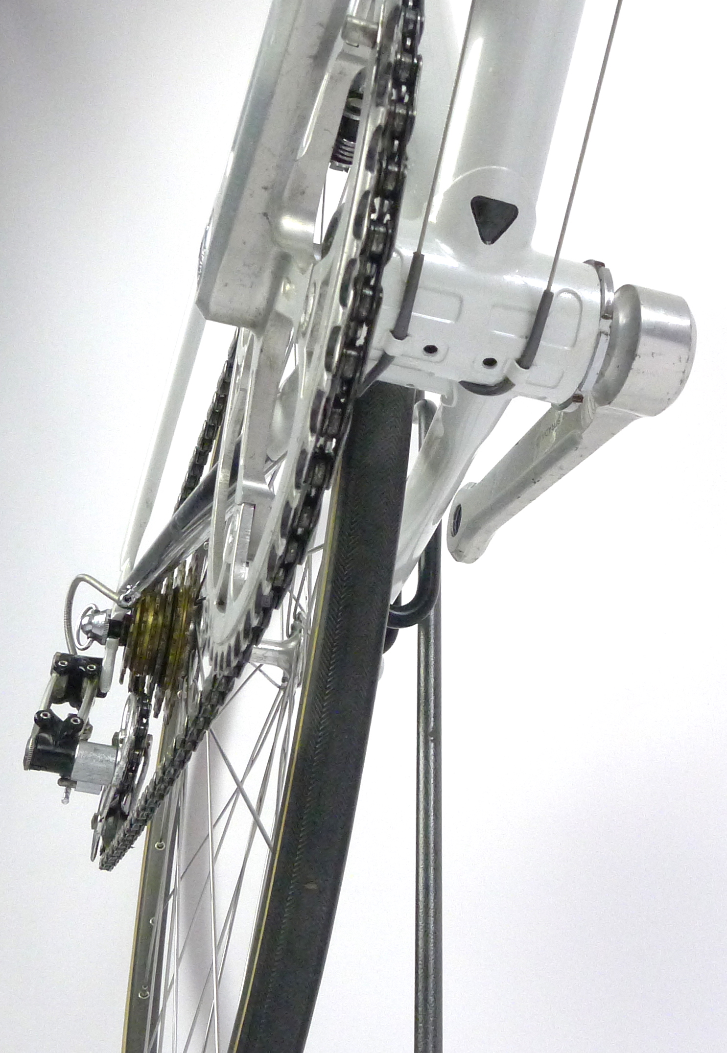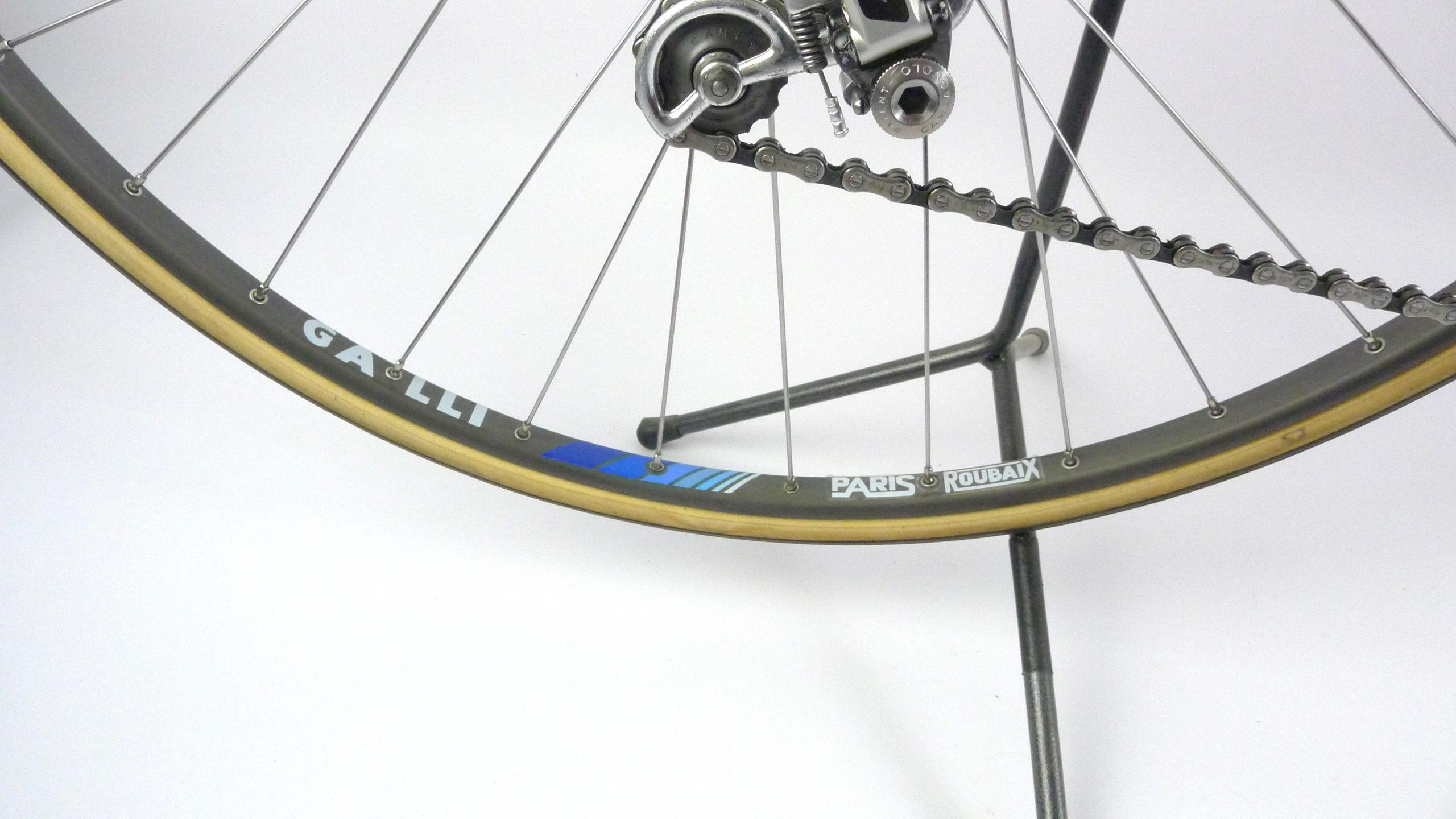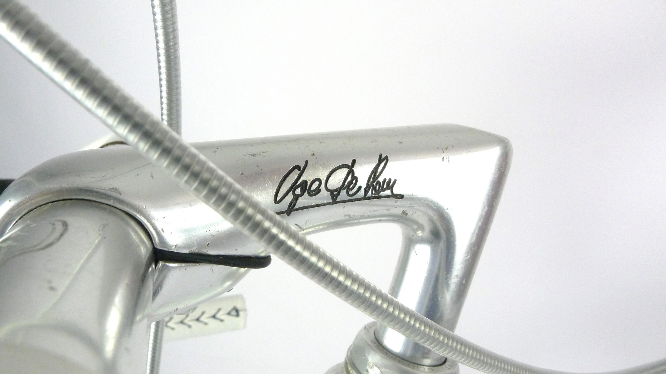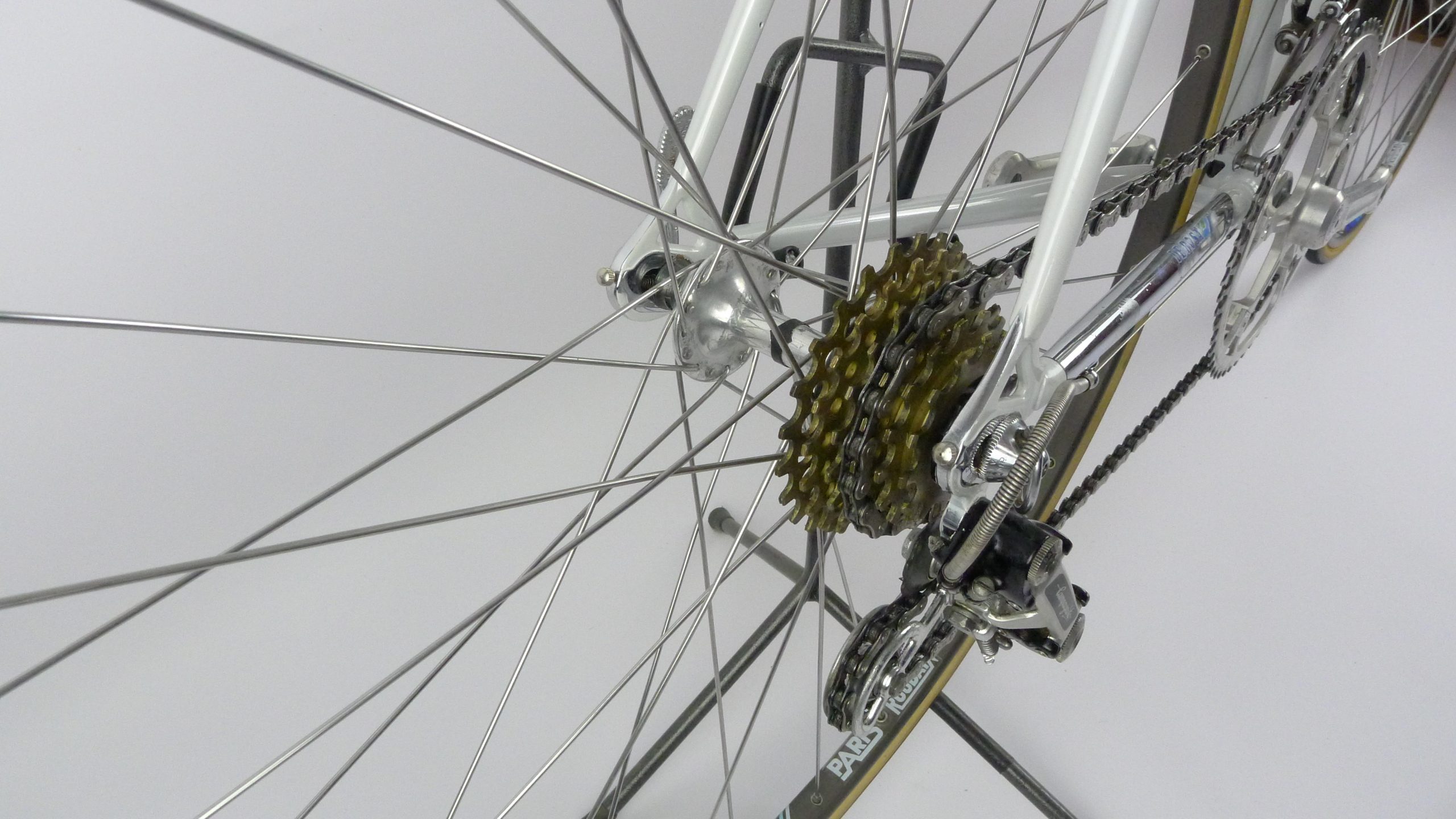 An early Ugo De Rosa Professional Slx with Campagnolo Super Record group, Galli Paris-Roubaix rims and Modolo Inter. pat. brakes. The bike is simply fabulous. The pearl white color and De Rosa equipe decal set. its made with Columbus Slx tubes.
