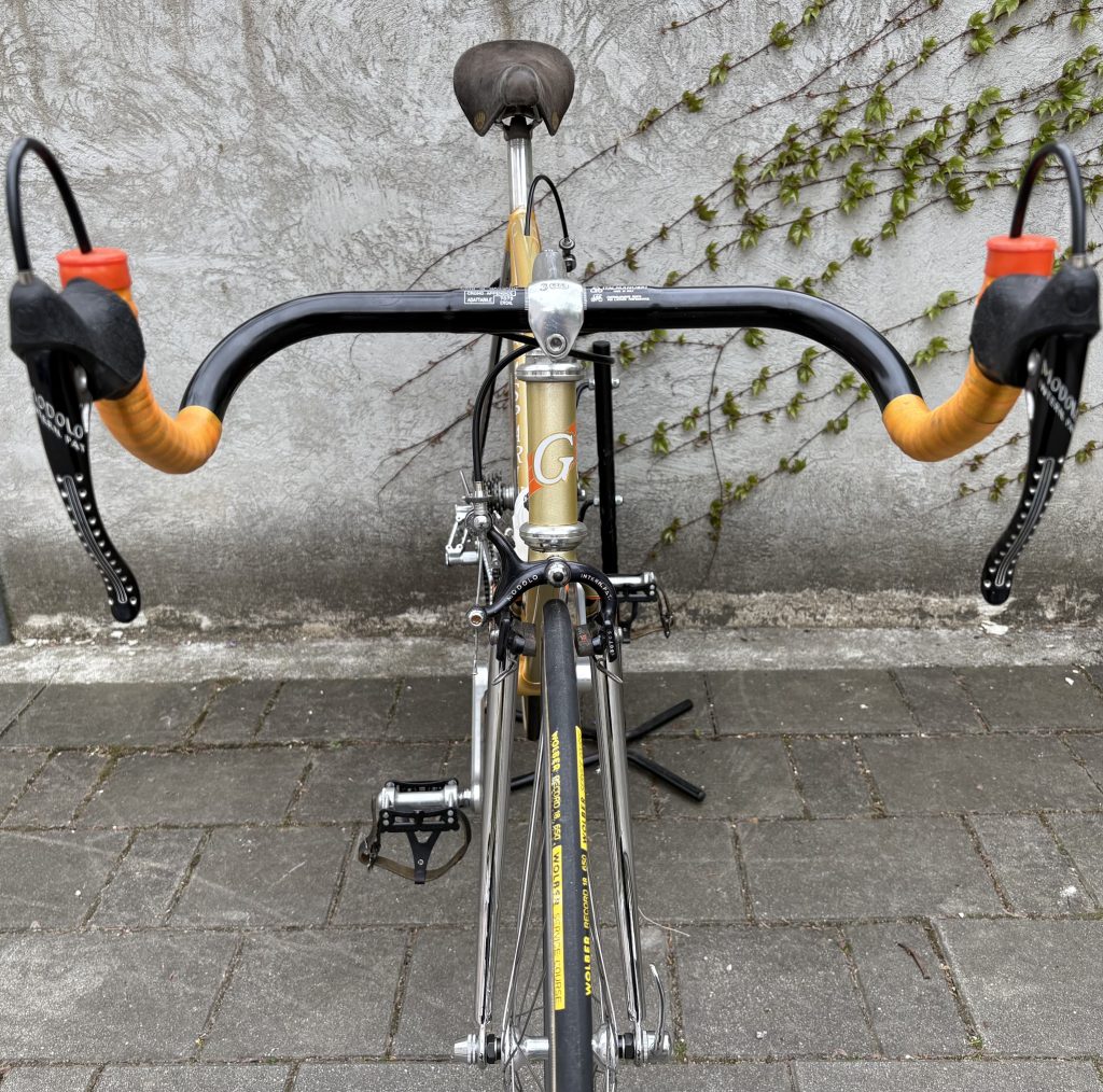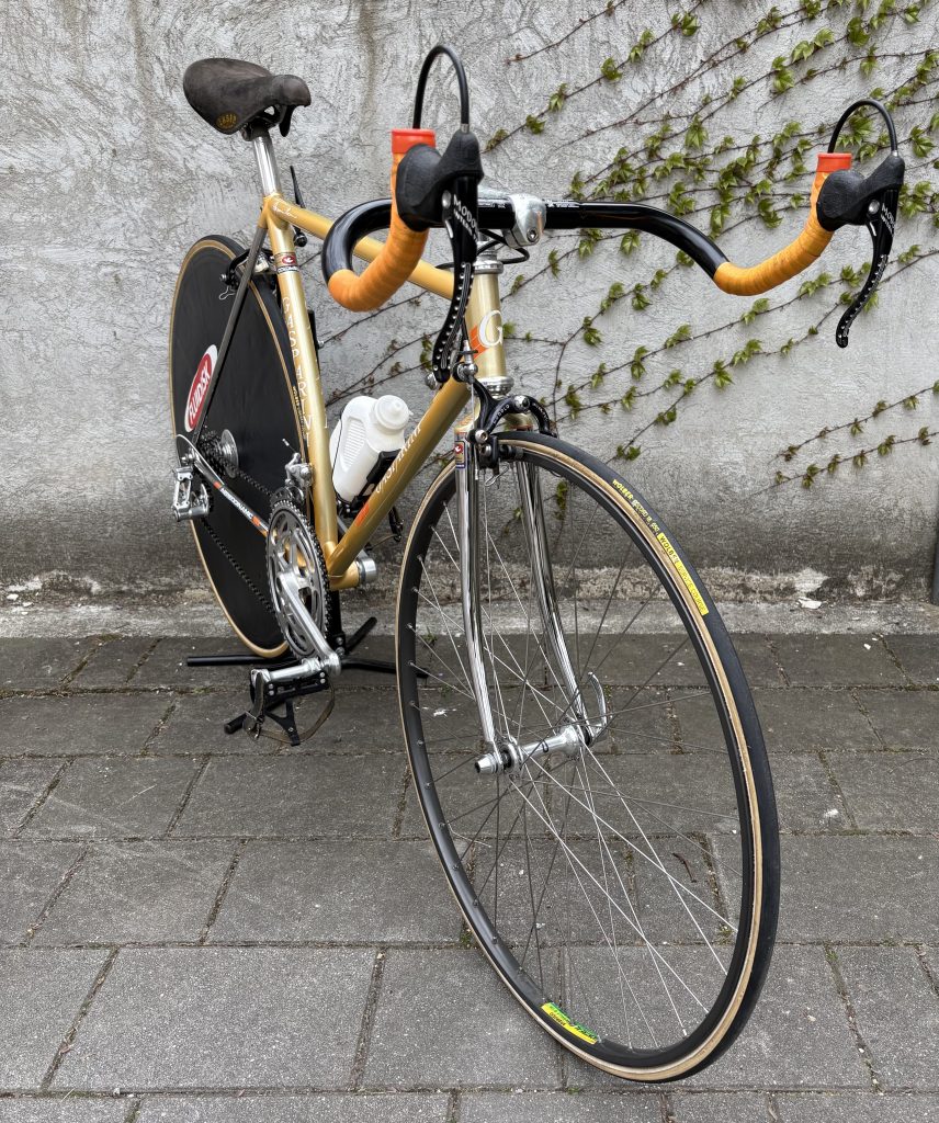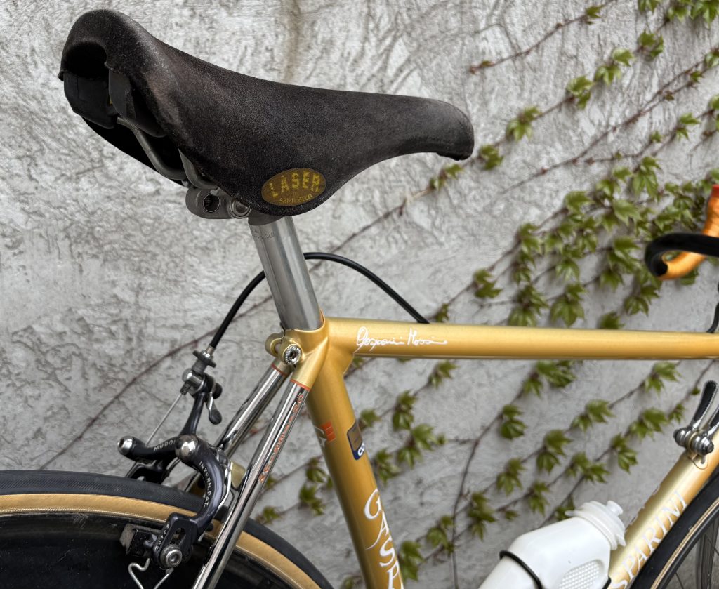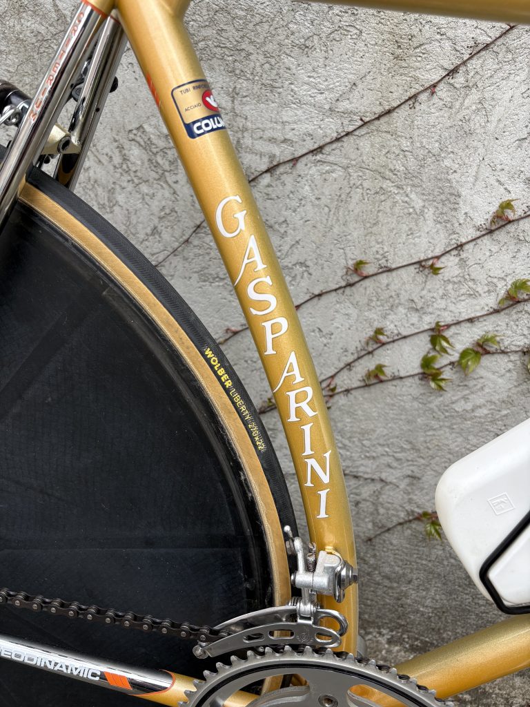 Rescued TT frame Gasparini Criterium built in 80s by family Taverna. Some of old Italian framebuilders told me that was made for Gasparini cycling shop in Rome. This frame was designed for Criterium and TT races. I refurbished and assembled it.