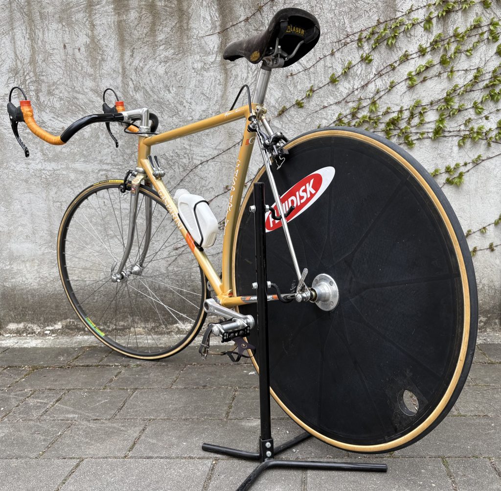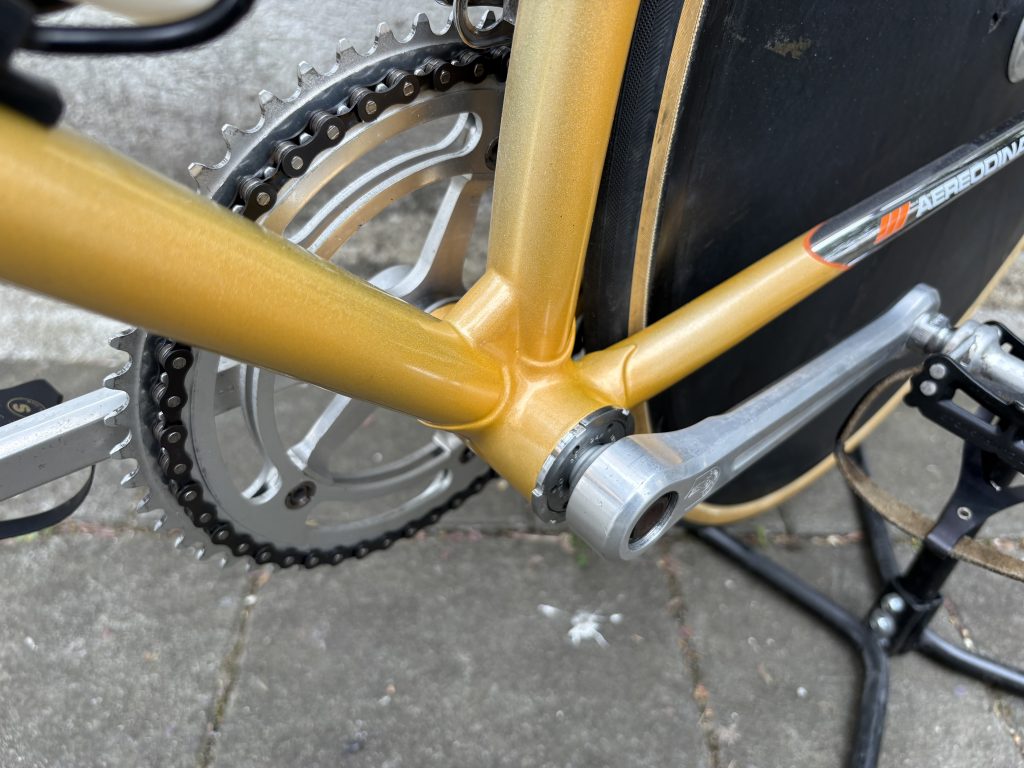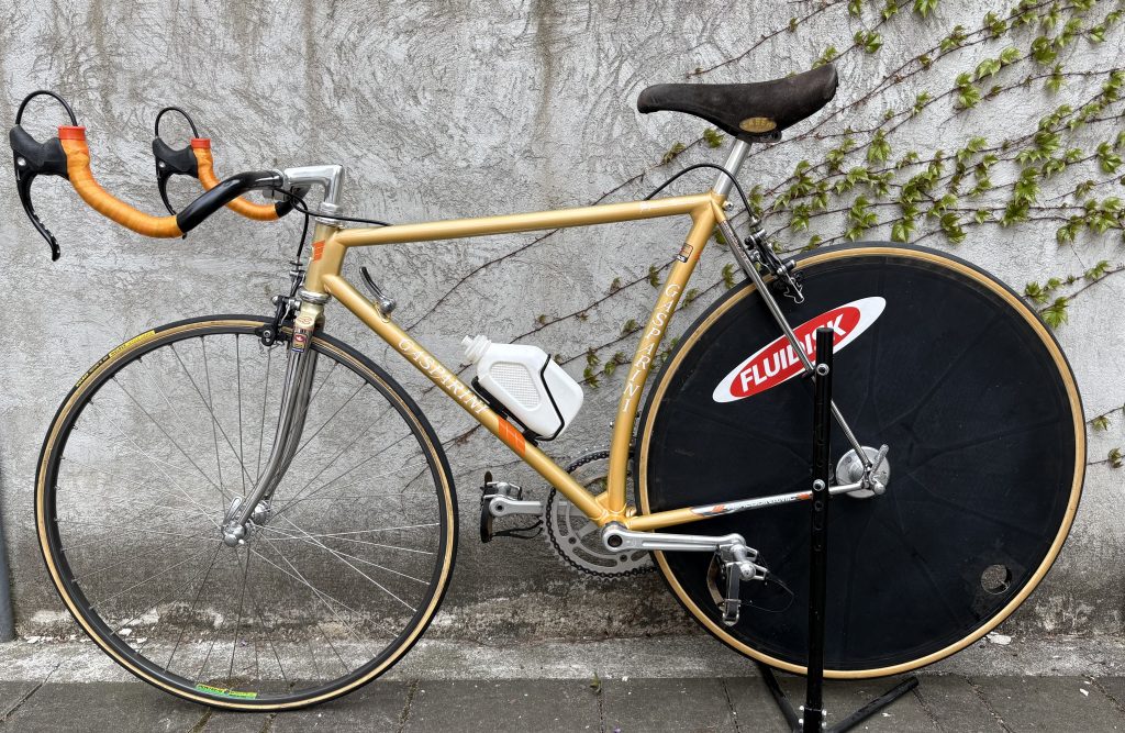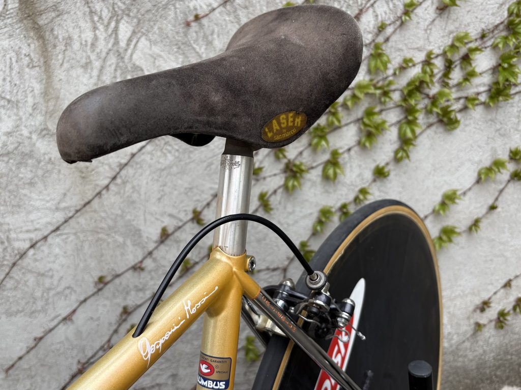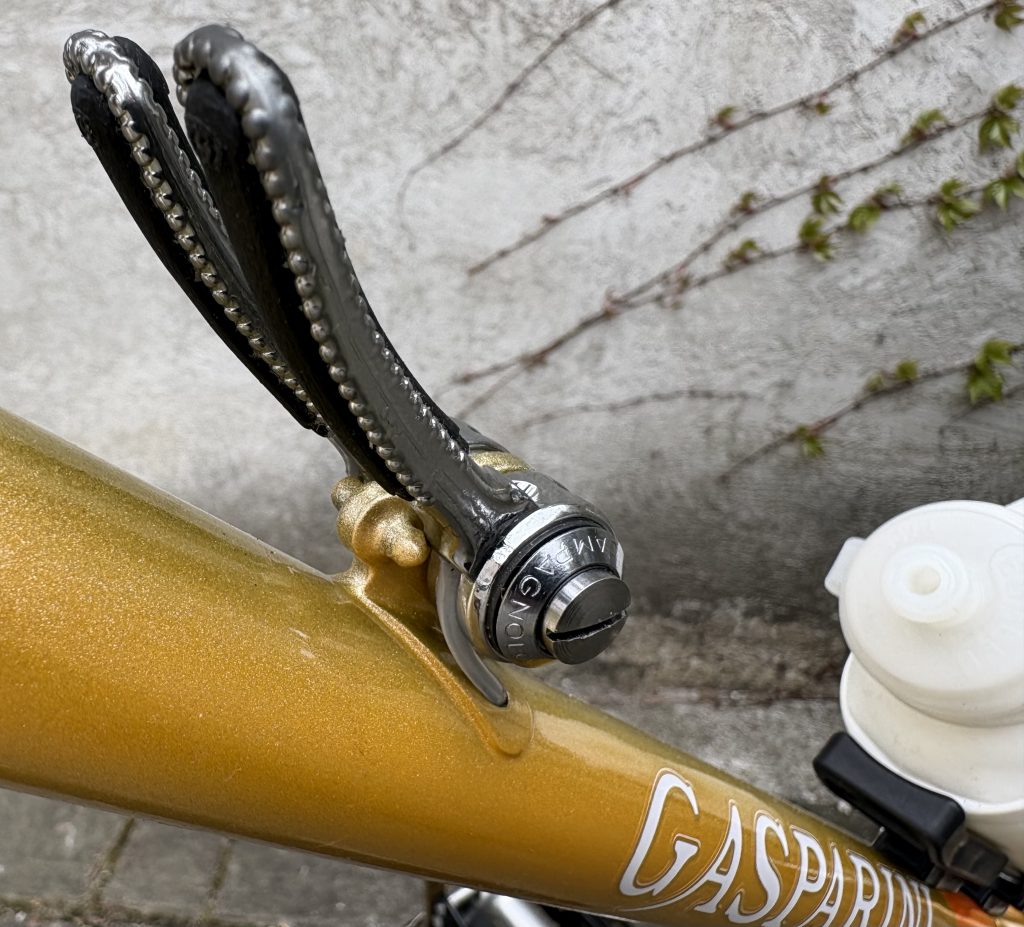 Rescued TT frame Gasparini Criterium built in 80s by family Taverna. Some of old Italian framebuilders told me that was made for Gasparini cycling shop in Rome. This frame was designed for Criterium and TT races. I refurbished and assembled it.
