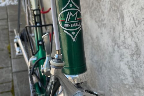 Here is very nice Luciano Paletti Lightning. I bought this frame long ago. The paint is original, but I put up new decal set. Because of decals I needed great amount of time. I tried to get original , but it was mission impossible. Never mind. Than we redesigned the same decals like originals and put them on the same place. I tried to do something different with the mounted group, because it's aero frame. I put Campagnolo Super Record group with Modolo Kronos brake levers and Mavic Ma 50 rims with Dura Ace hubs.