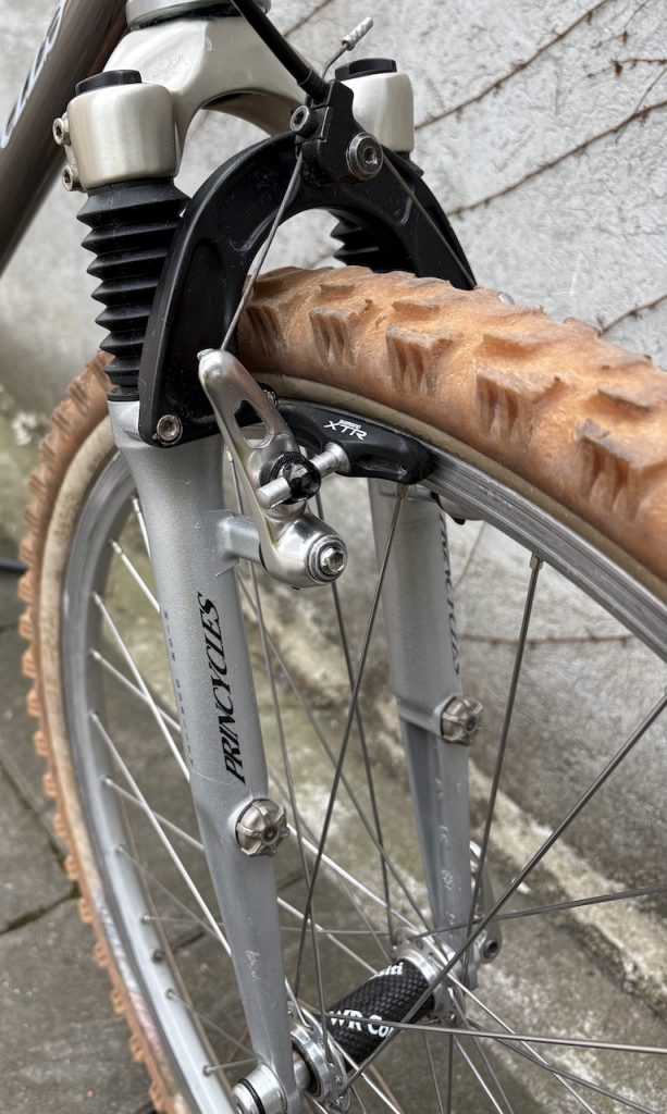 Beautiful Mountain bike Princycles from middle 90s. Princycles is very known workshop from Verona Italy. Founded by Claudio Princivalle in the second part of 80s who was a prodigy mechanic in MTB world. A very nice interview with owner of the Workshop - History